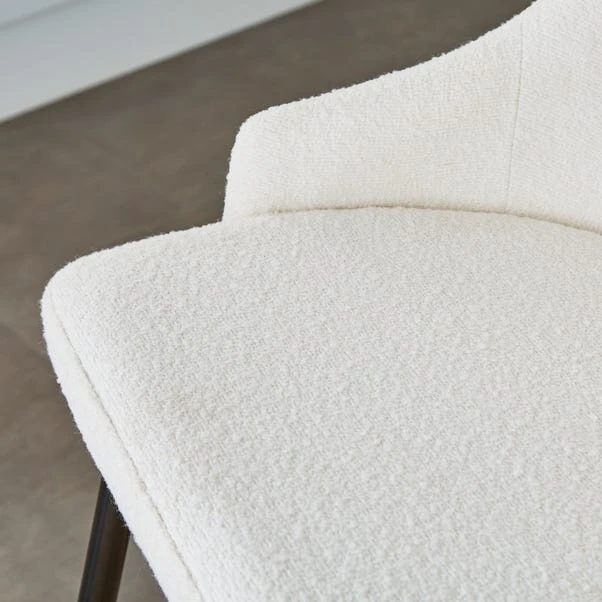 Finishing any bar space is simple with the Ariana Boucle Bar Stool. Designed with a curved back rest design and angled legs, this stool makes an impression. Finished with gold-effect tipped feet, it’s easy to fall in love.
