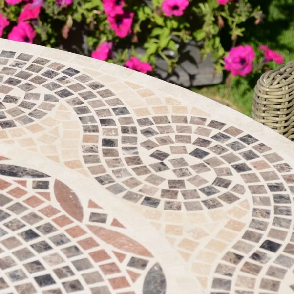 Inspired by the classic mosaic look, this circular dining table will be a stunning addition to your garden this summer. The stone stop table has a gorgeous mosaic design that has been hand laid. As the table is crafted from marble stone, it is heavy and strong.