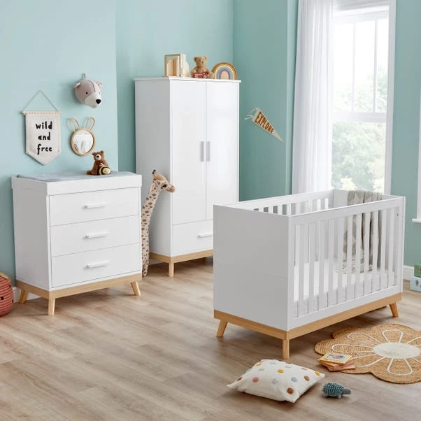 This set provides everything you need to create a stylish and organised nursery, while maintaining the same minimalist Scandi design. The wardrobe adds extra storage space with its neat, functional layout, perfect for keeping baby clothes and essentials tidy. The compact design of the cot bed and changer makes this set ideal for limited spaces, while the inclusion of the wardrobe ensures there’s still plenty of room to store everything you need for your baby.