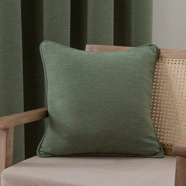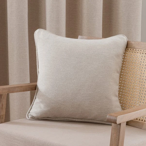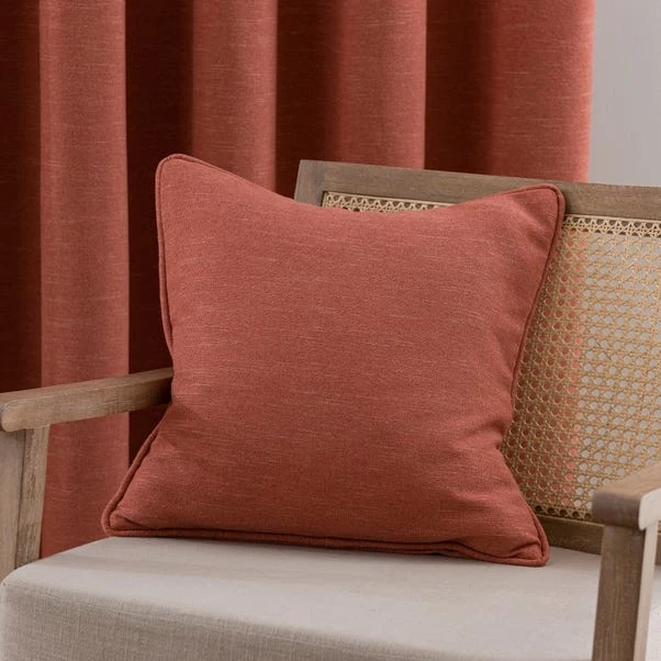 With its heavyweight fabric and linen look, this Calista cushion has a soft feel and is available in a wide range of colours to suit your decor. The square cushion is finished with a piped detail and the cover is removable for machine washing. The cushion is filled with plump polyester fibre for great support, and matching curtains are also available.
