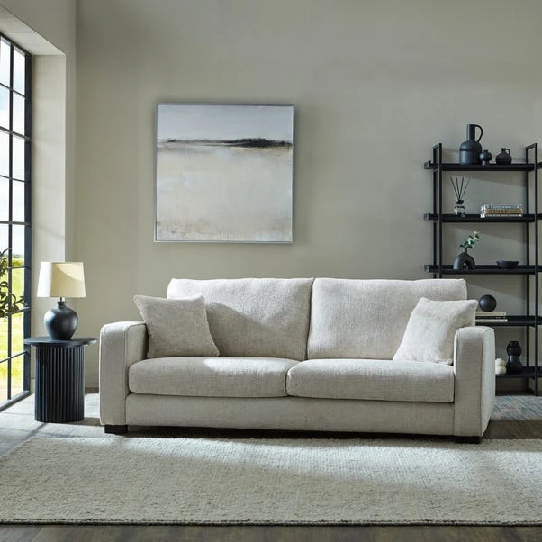 Designed with comfort in mind, the Carson 4 Seater Sofa would make a welcome addition to any home. Boasting sprung, foam-filled extra deep seats, and fibre-wrapped foam back cushions, this sofa is the perfect place to sink back into after a long day. This stylish sofa features soft and hard-wearing chunky chenille upholstery, available in a choice of trendy colours and styled with a piped edge detailing and complementing black wooden feet for a sophisticated look. This sofa also features removable cushion covers for easy care, and is supplied with two matching scatter cushions.