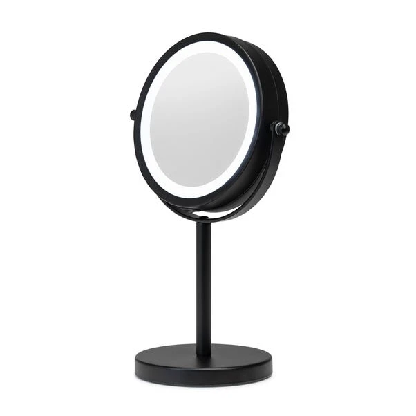 Add a touch of sophistication to your bathroom with the Battery Operated Pedestal Mirror in Matt Black. This sleek, freestanding mirror features LED lighting and adjustable magnification, making it perfect for grooming routines. Its statement matt black finish adds a modern touch to any bathroom or makeup table.