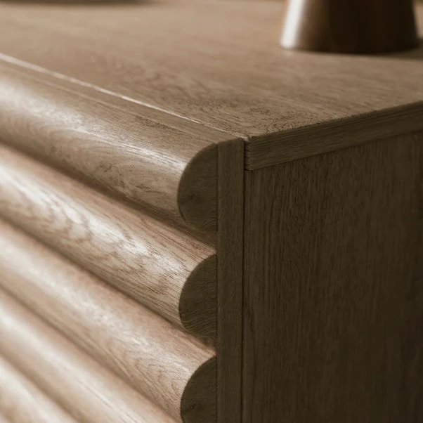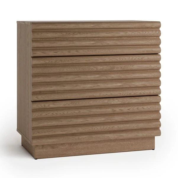 With its sleek silhouette and rich oak finish, this chest oozes modern elegance while providing essential storage space for your bedroom. The three spacious drawers offer ample room to organise clothes and belongings, ensuring a clutter-free environment. Designed for convenience, the Dax Chest features undermount metal runners for smooth and silent drawer operation, adding a touch of luxury to your daily routine.