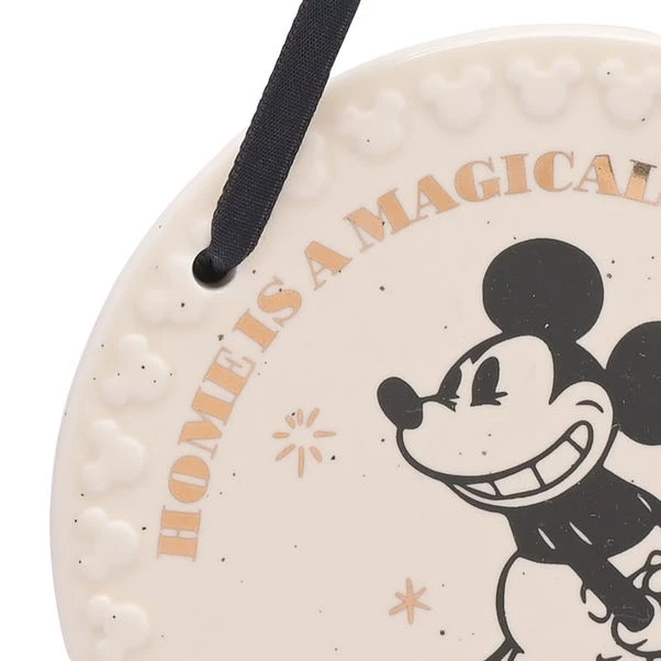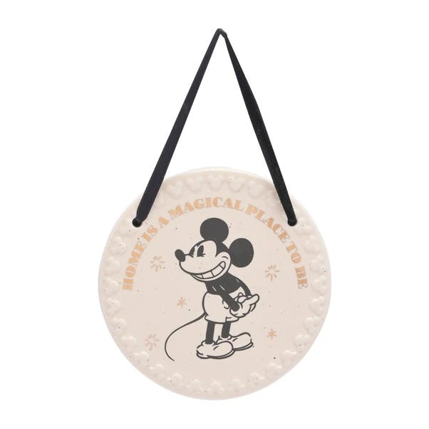 Add some fun to your home with the iconic Mickey Mouse, illustrated on a durable, ceramic-made hanging plaque that features the motif “Home Is a Magical Place to Be”.