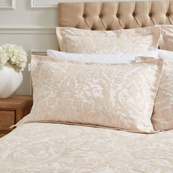 Made from high quality 240 thread count, this Dorma Oxford pillowcase pair has been crafted from soft polycotton fabric in a stunning Flora and Funa Jacquard print. This pillowcase pair will have you dreaming all night. Beautifully finished with a secure zip closure, so you can enjoy a peaceful and uninterrupted night sleep.