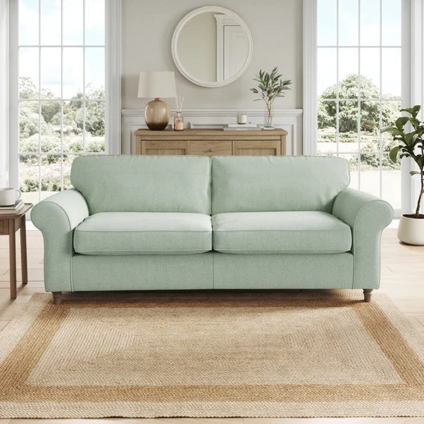 Crafted with gracefully scrolled arms and elegantly turned wooden feet, the Flori sofa range presents a timeless style that effortlessly elevates any room. Available in a selection of colour palettes, this sofa boasts upholstery in soft chenille, accented with piped edge detailing for a sophisticated touch. Enhanced with brand-new foam seat and back cushions, it promises luxurious comfort alongside its exquisite design.