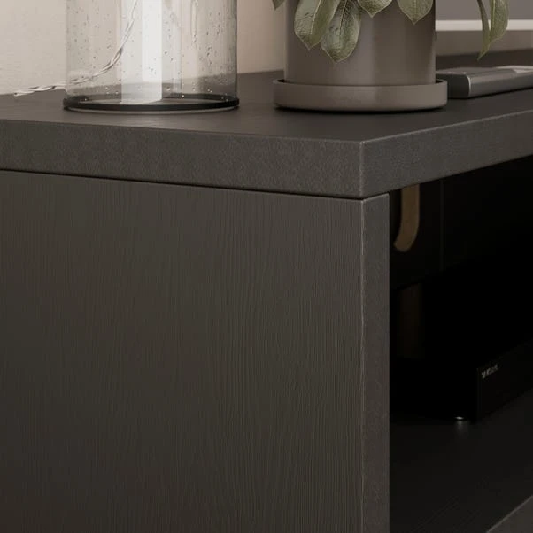Exclusively crafted by Dunelm, this unit features a large open storage space, perfect for housing media devices, gaming consoles, or decorative items. With two assembly options, it offers flexibility to suit your needs, while the sturdy metal legs provide stability and a contemporary edge.