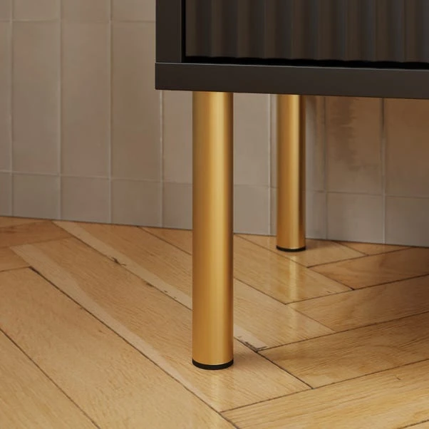 - Subtle matte gold finish handles and legs