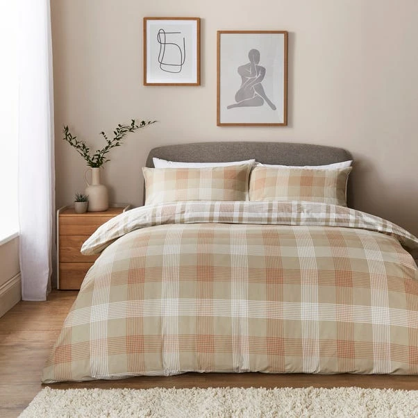 Add a timeless touch to your bedroom with this classic Check Duvet Cover and Pillowcase Set. Featuring an elegant, large check design in a soothing natural colourway, this set exudes sophistication and charm. Made from 100% brushed cotton, it offers unparalleled softness and coziness, perfect for keeping warm during colder nights. The button closure ensures a secure fit, and the set is machine washable for easy maintenance. Elevate your sleep space with this beautifully crafted, classic bedding set.