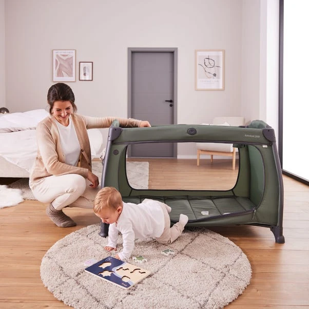 The Play N Relax Center offers a comfortable and secure space for both newborns and toddlers up to 15 kg, making it ideal for holidays and at home. With a raised newborn module, it’s easy on your back, and the changing mat adds convenience. As your child grows, they can sleep on the lower level. The travel cot is simple to assemble and fold, and the roller wheels allow for easy movement between rooms. Large mesh panels and a ventilated base ensure a breathable sleeping environment, while the access hatch lets your little one crawl in and out independently. Complete with a transport bag for space-saving storage.