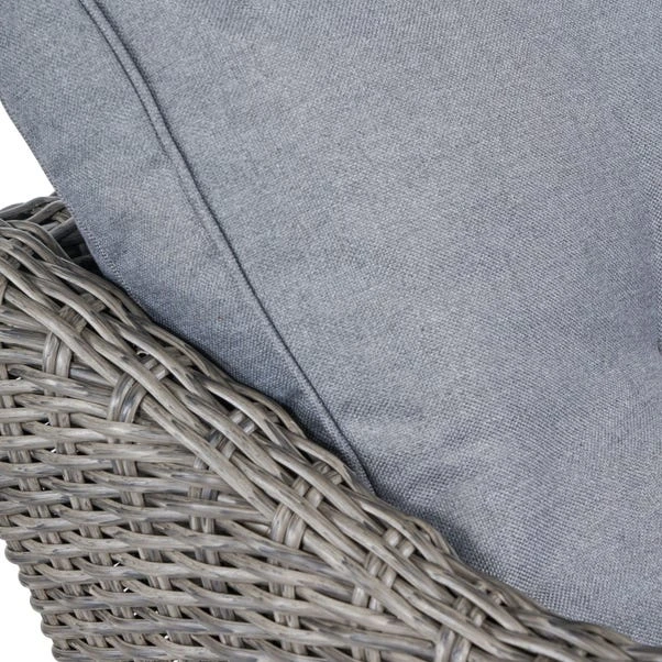 The Larissa Kubu Rattan Lounge Set comfortably seats up to 4 people, featuring a solid and robust design with a solution-dyed rattan weave. With water-resistant cushions and fire-retardant properties, it combines elegance with safety for your outdoor lounging experience.