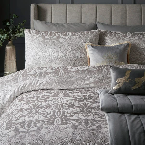 Elegant and luxurious, this Firenza duvet cover and pillowcase set has been designed with a stunning damask pattern, created by the master of interior design in this seasons must have colour palette is woven into a sumptuously soft velvet fabric. Finished with a secure button closure to prevent the bedding being undone whilst sleeping, this bedding set includes matching pillowcases for a complete finish. Available in another gorgeous colour in a variety of bedding sizes.