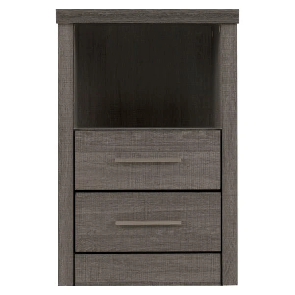 - Dark wood effect finish