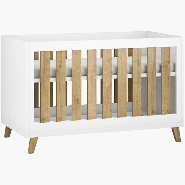 Lovingly crafted, the Luxurious Siriana Cot Bed from Little Acorns ensures sturdiness and timeless appeal. Suitable for infants up to approximately 4 years, it converts to a toddler bed, features three adjustable mattress heights, and requires a mattress size of 140 x 70cm (not included).