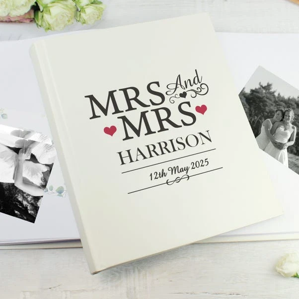 Honour your love story with this traditional photo album personalised for Mrs & Mrs. With space for your surname and date, it’s a timeless gift for weddings and anniversaries, featuring approximately 30 tissue interleaf pages.