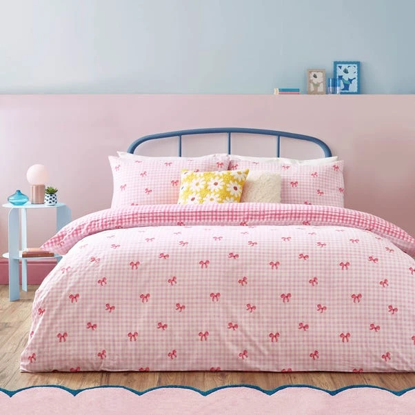 Add a flair of style to your bedroom with this gorgeous duvet cover set, which features delightful gingham checks with dainty bow accents. Fully reversible, this set is crafted from a soft yet durable polycotton blend.