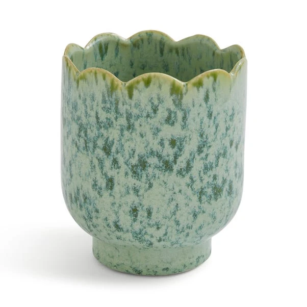 Add a stylish touch to your space with this Scalloped Ceramic Plant Pot. Its glossy reactive glaze finish creates a unique, high-quality look, perfect for displaying your favourite plants or flowers. The delicate scalloped edge makes it a beautiful addition to both modern and classic interiors: a timeless piece that complements any setting. Whether on a windowsill or a side table, it brings a refined touch to your home and is available in multiple colours to match your space.