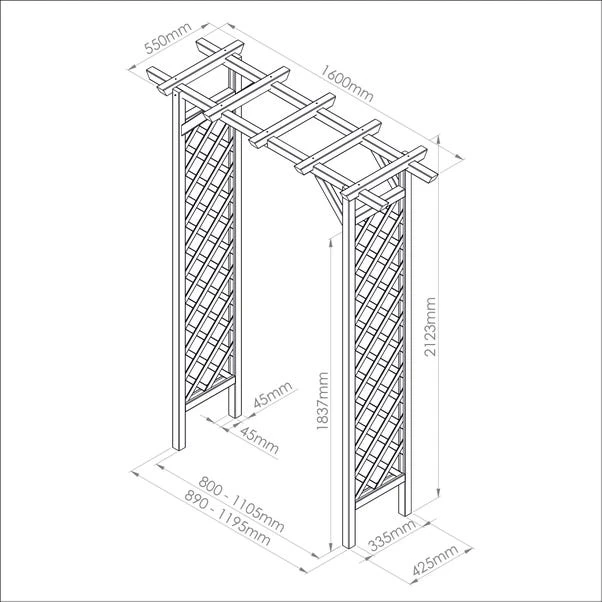 A simple, yet attractive design, the Sunset Arch can be used in a variety of ways. Its adjustable width of up to 1. 60m, allows you to place at the entrance of your garden, use on a garden walkway with planters, or simply position on its own and delight in its natural features.