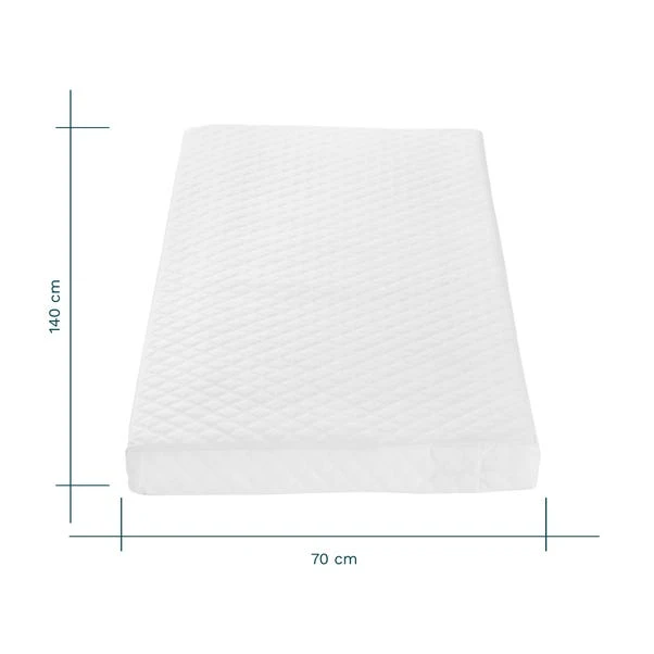Cot Bed: D 10cm x W 70cm x L 140cm