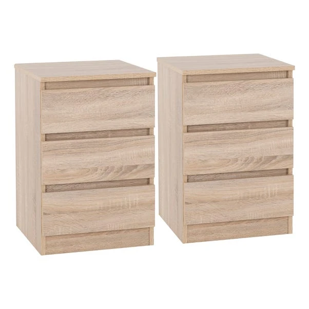 This set includes a spacious 3-door wardrobe, a versatile 4-drawer chest, and two sleek 3-drawer bedside tables, each designed to meet your storage and style needs. At the heart of the set is the Malvern Triple Wardrobe, offering extensive storage space with a combination of hanging rails, shelves, and drawers. Perfect for couples or those with an extensive wardrobe, this wardrobe ensures easy organisation and accessibility for all your clothing and accessories. Its clean lines and choice of finishes—from classic oak to contemporary grey—make it a stunning focal point in any bedroom, while its robust construction guarantees durability and longevity. Complementing the wardrobe is the Malvern 4-drawer chest, providing additional storage with spacious drawers that glide smoothly on metal runners. Ideal for folded clothes or bulkier items, the chest maintains the set’s minimalist aesthetic while offering practical functionality. Its sturdy build and elegant handles add a touch of refinement to your bedroom decor. Enhancing the bedside experience are two Malvern 3-drawer bedside tables, offering convenient storage solutions for essentials like books, gadgets, or nighttime necessities. Designed with compact dimensions to fit snugly alongside your bed, these tables feature easy-glide drawers and a sleek design that coordinates effortlessly with the rest of the set.