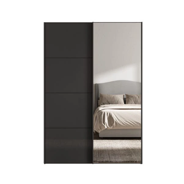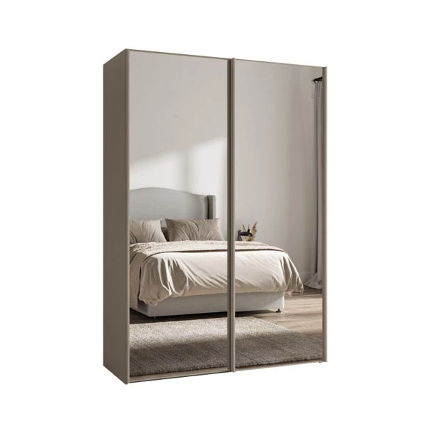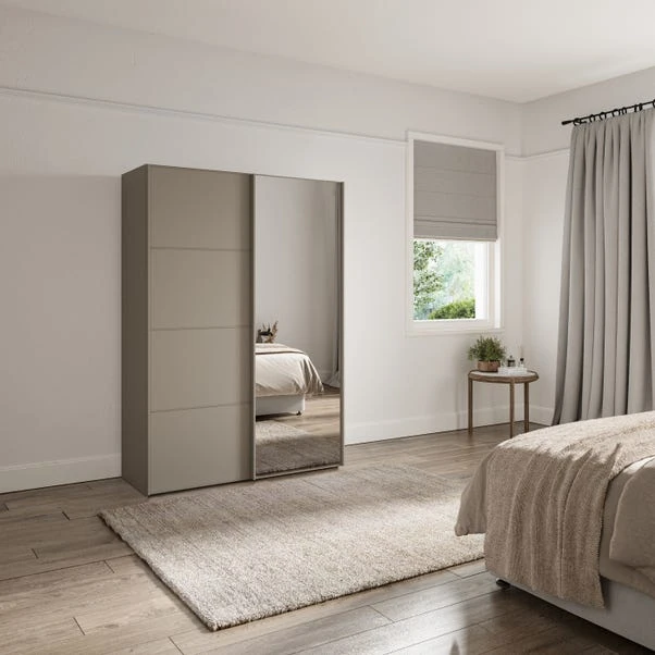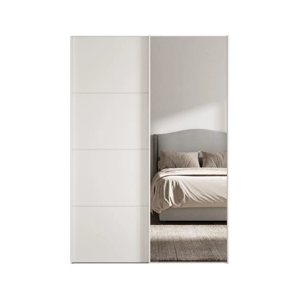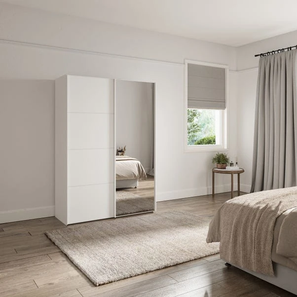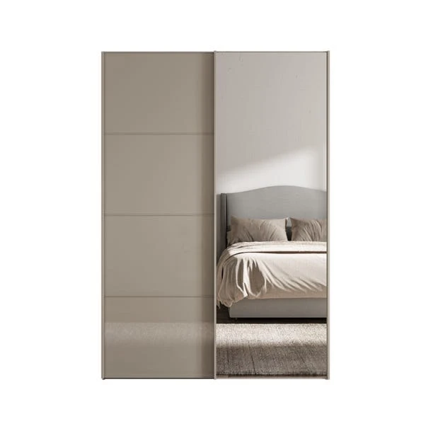 Boasting a sleek, modern design, the Altena 1.5m Sliding 2 Door wardrobe would bring the perfect blend of style and practicality to your space. This contemporary wardrobe is available in a choice of modern colourways, with matt or glass finished fronts, as well as built in mirrors for an added practical touch. The space saving sliding doors allow for easy opening, and open up to reveal a spacious interior, that can be customised to suit your needs thanks to the height adjustable shelves and rails. Crafted with elegant colour coordinated handles, highly resilient metal fittings and scratch resistant fronts, this wardrobe is built to last.